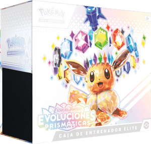 ¡Desde lo esponjoso y ardiente hasta lo helado y fantástico, Eevee y sus muchas Evoluciones ocupan un lugar especial en los corazones de los Entrenadores Pokémon de todas partes! Descubre sus nuevos y únicos poderes como Pokémon ex Tera Estelares, y busca tu propio tesoro entre una gran colección de Pokémon ex de Paldea y más allá. ¡Gemas relucientes y patrones ocultos te esperan al final del arcoíris en la expansión del JCC Pokémon: Escarlata y Púrpura—Evoluciones Prismáticas!